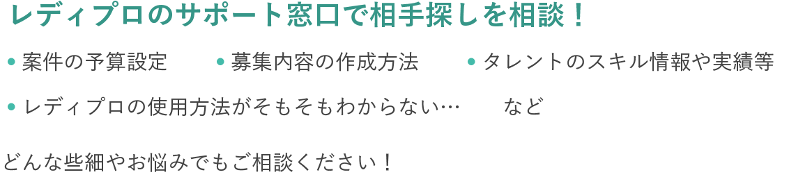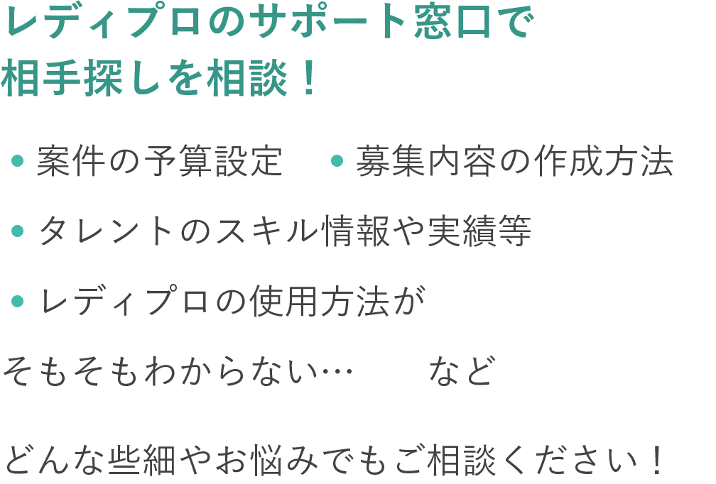 - トラブルやお困りごとはレディプロサポート窓口が対応します!